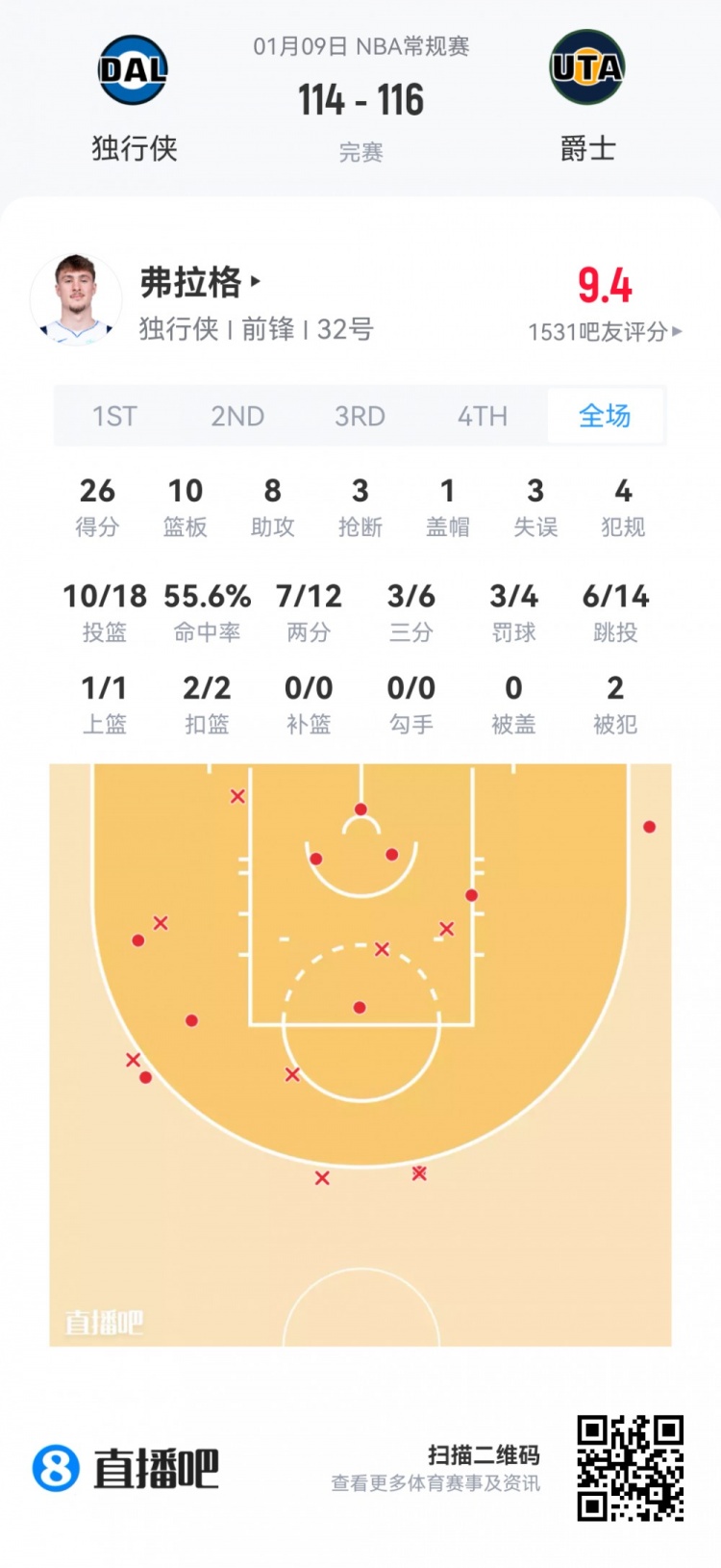 独行侠状元秀弗拉格 登场37.8分钟